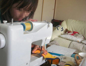 ミシンのチラシをパパの枕に今夜しのばせる作戦です。きっと夢にでてくることでしょう。笑