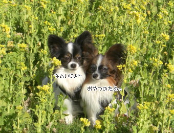 あらし、無事に立派なブツが出ました(o^-^o) まぁまだいつもの文句なしのブツより少しだけゆるめですが、もうティッシュでつまめるほどなので、一安心です~♪ 風パパの写真、褒めていただいてありがとうございます!喜びますよ~~(*^m^*) 全く写真など興味なかったのに、新しいカメラを買ってから、すっかりハマってしまったようで、いろいろ撮影に挑戦したりして練習中なんですよ(^w^) 菜の花、背の低い花が畑一面に咲いていて目立っていたんですよ!風パパが車を止めて(人の畑なのに)勝手に撮影会(* ̄m ̄) ププッ 2匹ともいい迷惑ですよね~(;^ω^A