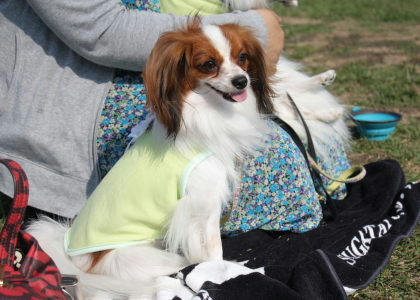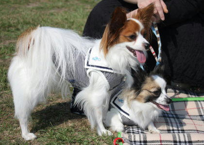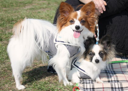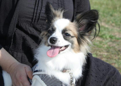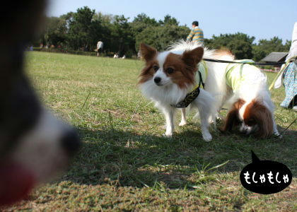 と歩いていると後方からパピヨンらしきシルエットが!!!