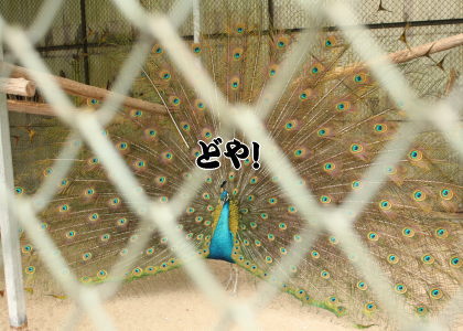 ここのクジャクさん、いつ行っても羽を広げて…