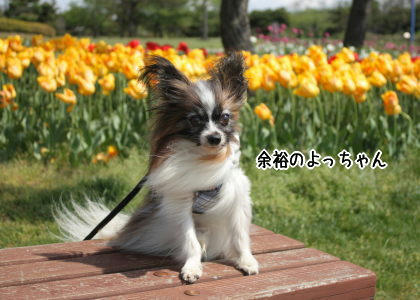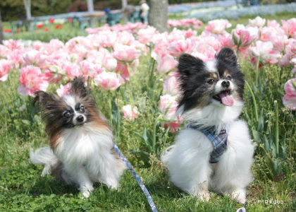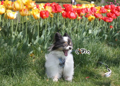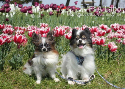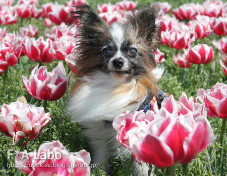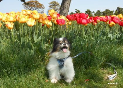 なんか最近のチューリップは丈が低いですね。昔はもっとみょんと長かったような?でも、この丈がわんこの写真撮りやすくっていいのだ♪