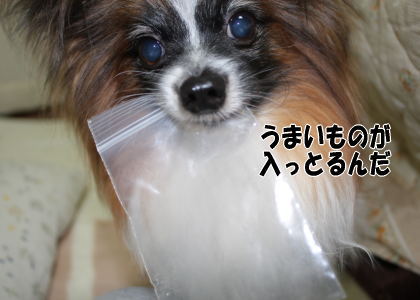 何かを咥えて逃走!お昼のフードを入れていた袋らしいけれど