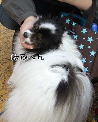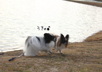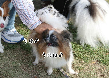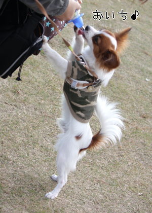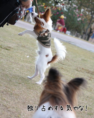 ウォルフィくん、ホントに持ち帰る?ってくらい嬉しそうにしてましたね~♪でも次に見た時はもうどこかへポイ…(≧3≦) =3 ウケました! 風吹は舞い上がると手がつけられないんですよ(^.^; 気に入らなくても嬉しくてもどっちにしろ吠えます(汗)オレ様なんです(笑) ナデナデしてもらって本当に喜んでましたからね~(´ー`) 風吹も擦り寄って行ってましたね♪「んが~んが~」って、怒ったような声になりますがアレで喜んでる声なんですよ(^w^) でも抱っこ中に正面からナデようとすると怒りますのでご用心!ウォルフィくんのご挨拶は全然しつこくないですよ~~風吹が神経質なだけですからお気になさらず~~!血尿は繰り返していますが、本人は至って元気にしています(´▽`) 寒くなるとあまり遊べなくなるので、気候のいい今のうちに遊ばせてあげたいと思っています。こちらこそまた遊んで下さいね~♪ウォルフィくん大好き(o^-^o)
