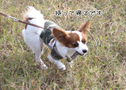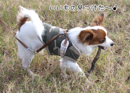 木の棒を嬉しそうに「持って帰るです」しているとこが最高に可愛い。私好みなまたなんとも可愛いパピちゃんです。