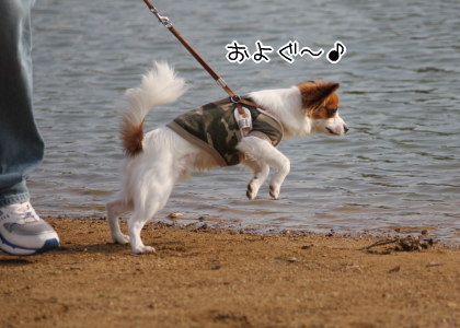 リードを離すと真っ直ぐ飛び込みそうな勢いですよ(゜m゜*)
