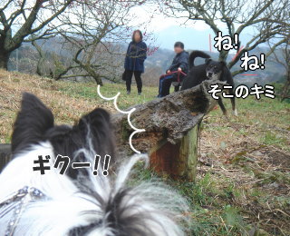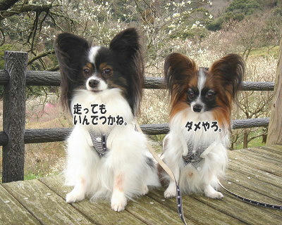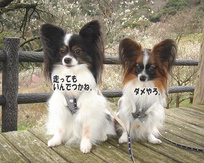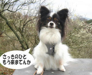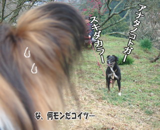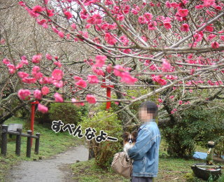 ウケていただけた?(* ̄▽ ̄*) 梅、雨に濡れてたけど、それもまた風情があってヨシかな~と思いました(^w^) あと、梅の花の香りも漂って、なかなか良かったですよ♪わんちゃんも結構来ていて、あらしがうなるうなる(^・^;) ナンパのわんちゃんにも最初うなってたんだけど、あちらの方が勢いがあって、後半のあらしは見ない振りに徹してました∵ゞ(≧ε≦; )ブッ