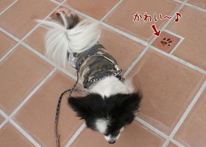 アプローチには肉球が型抜きされたタイルが♪