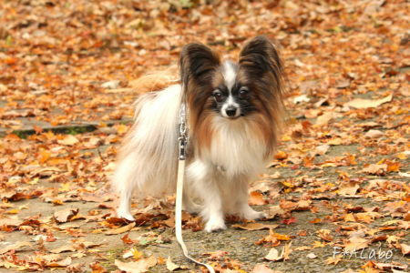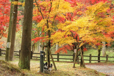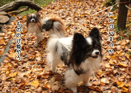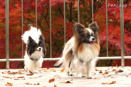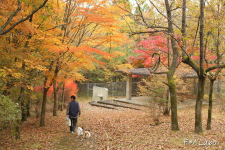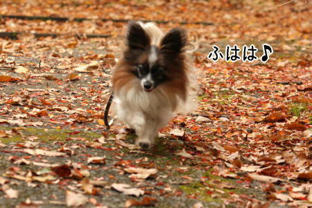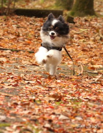 落ち葉の中、パパ~ママ間を往復ダッシュするあっクン(*´ー`)