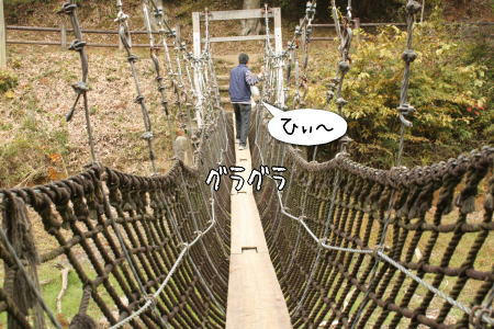 吊橋もね~全然低いのに怖いんだよ!これが本物の高い吊橋だったら…