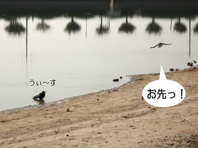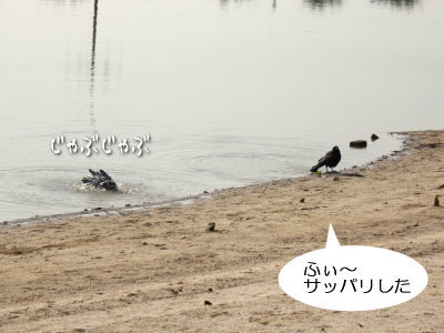 カラスの行水と言うより…カラスの長風呂?(゜ε゜*)ぷっ