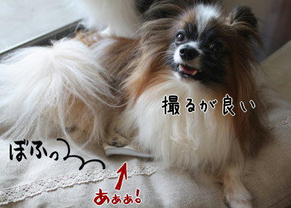 毛量、増えてるでしょう~!一時期ホントに肛門サマも丸見えなくらいスカスカでしたからね…。よくぞ戻ったと喜んでいます。体重はさておきね(´ー`;) ぱぴークンも減量中ですか~~風吹も一応ね、これ以上増えないようにと以前に比べたらフード量を減らして頑張っています!
