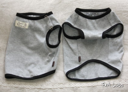 お値段言わなければわかりませんよね~( ´艸`)ふふ そう、実は元服が300円程度、プラス 縁取りニットテープとワッペン代でトータル920円で2匹分のTシャツが出来ちゃいました!エコと言うかケチ服ですね(笑)