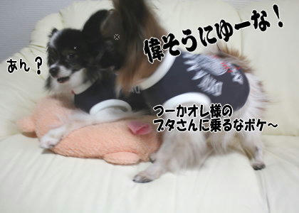 勝手にブタさんクッションを使うなと・・・そっちかよ(゜m゜*)ぷっ