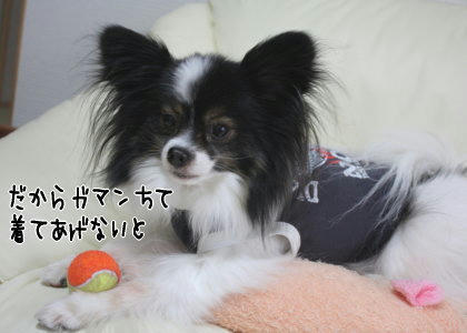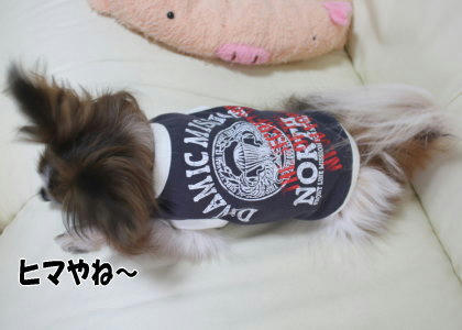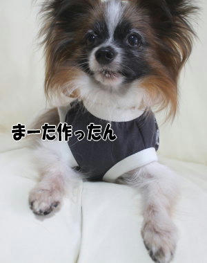 似合ってますか!ありがとうございます~(´∇`*) 濃いグレーなんですけどね、299円の子供服からリメイクしました。もちろん2匹お揃いです♪