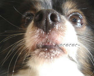 よだれが洪水のようにあふれ、滝となり、いつしか2匹の下にはよだれ池ができておりました~(;゜▽゜A 美味しいものってわかるんですね~!