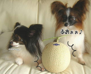 メロン、相当おいしかったですからね♪明日は風吹のシャンプー予定ですが、目の前にメロンをつるして(置いて)お手入れ進めようと思います!