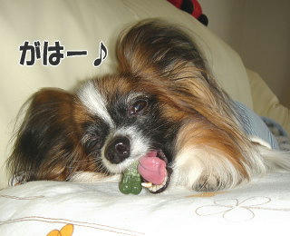 そう言えば・・・絆創膏は嫌がってなかったなぁ(‥ ) はがす時は相当怒られたけどね(;^ω^A グリニーズ丸飲みはビックリしたよーー!焦った!「また病院に逆戻りか?」って思ったもん。のどに指突っ込んでみたけど、それは「ガー!」って怒られて・・のどに詰まったんではないみたいだったし、たぶん飲み込み切るまでが苦しかったんだと思う。あの涙目が物語る!