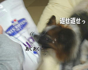 コハクも今日買い物袋の中から自分のおやつを選び出したよ。