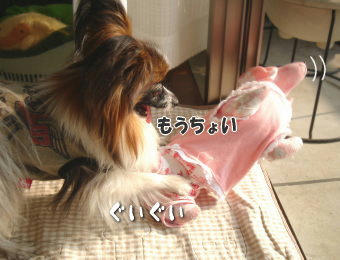 カワユスですか~(ノ∀`*) ちっこい体で必死で・・って感じですが、コレ楽しくて仕方ないみたいです(゜m゜*)ぷっ 実はお戯れの延長なので、一歩間違えば腰振り動画が・・( ̄▽ ̄;)危なかった~~(笑)