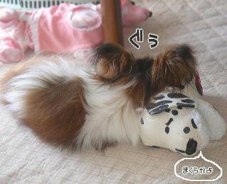 風吹の声、そう聞こえますか♪(o^-^o) いや、嬉しい! 今日は公園で発散できてよかったです~。パパの足、まだ養生が必要なので(完治まで時間がかかるそうで)あまりお出掛けが出来なくて・・・(^.^; 風吹もあらしも大満足だったようで、気持ち良さそうに寝こけてます(´ー`) あらしの撃沈寸前顔が可愛くてカメラを向けたのですが、耳が後ろにきゅきゅーってなって、パピヨンじゃなくアザラシ?ペンギン?が撮れてしまいました(笑)
