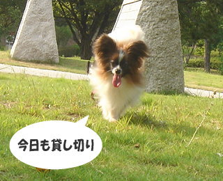 公園で、自由にかけまわる風ちゃんと、あっくん・・おりこうさんですね