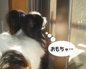 ベランダに干したおもちゃに気付いたあらし・・・