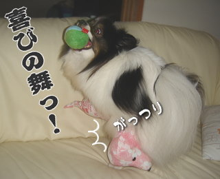 あ、100点は一応いただいておきますね(笑)ジャンプの足の揃い方といい、垂直跳びの姿勢といい・・・( *´艸`*) むぷぷ。妙に美しいですよね!私も100点あげとこう! そうなんですよ。日頃は近寄せるとビビるアロハちゃんを、何の躊躇もなく抱き込んで舞い踊っておりました!かなり嬉しかったようです~(*^m^*)