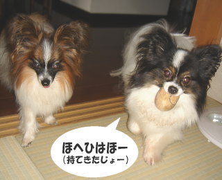 「それ取って来~い!」( ̄∀ ̄*)お♪乗ってくれた。(ついでに風ちゃんまで)