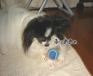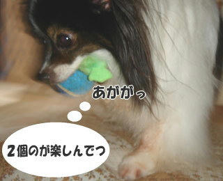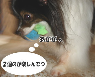 検索して納得~~♪まさにあらしのボールはライナスの毛布ですねっ!いやいやひとつ勉強になりました!(無知過ぎ!)2個一、器用ですよね~ちゃんと咥え方を工夫してるし!