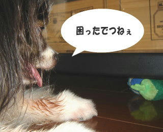 夢中で遊んでいたら、TV台の下に入っちゃったんだ。