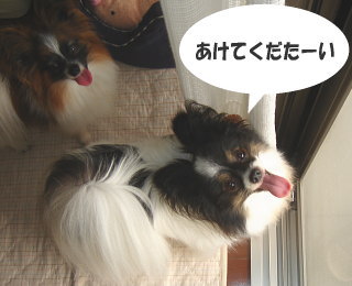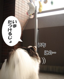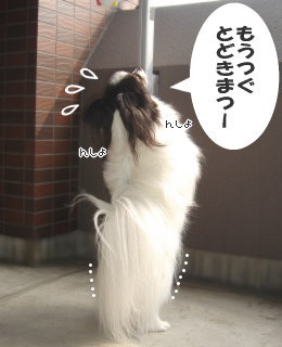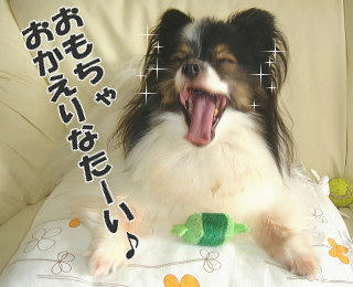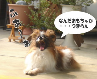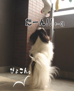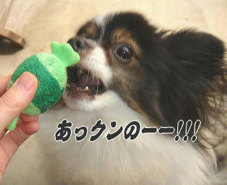 あらし、おもちゃにはものすごい執着&集中力なんです!でも、執着しすぎてママの声聞こえず・・・(-"-;) しつけとか、芸の仕込みには役立ちません。でもでも!こうやって立ち上がるのはスゴイですよね!普段も散歩中なんかに、遠くにわんことか見つけると、リードの引っ張りを利用して立ち上がることはあるのですが、何の支えもなく立ち上がるのはスゴイです!