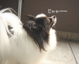 真剣(しんけん)なまなざしで見上げるあっクン。