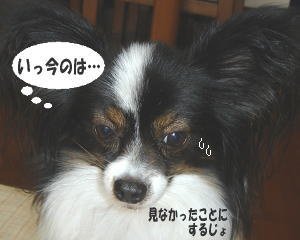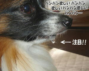 ママの遅い朝ご飯(パン)を欲しがり、熱い視線を注ぐ風ちゃん・・・