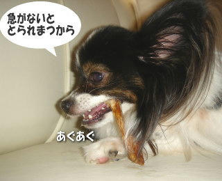 風吹・・・ε-(´ー`*) アキレスとかガムとかが関わるとあらしでも犬が変わるくらいだからね~だけどよりによって、よもちゃんのを盗るなんてねっ(⌒ー⌒メ) あらしは最初から最後まであの壊れた顔だった(≧ω≦)b ほんっとに楽しくてたまらなかったみたいよ~(´ー`) ウフフ