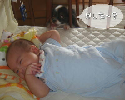 よも弟クンは、ちょうどミルク飲んだ直後だったみたい!ポンポン、