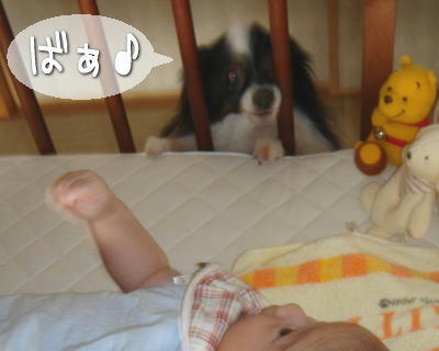 様子をうかがっています。あらしは赤ちゃん大好きだから~(*´ェ`*)ゞ