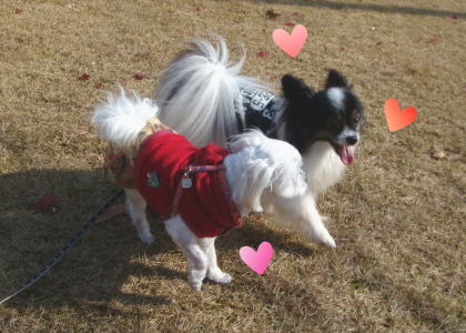 よもちゃん、ホント真っ白でキレイな子なんですよ~(*'-'*) えぇえぇ♪あらしはよもちゃんにホの字です(*^m^*) 散歩中よそのわんちゃんに出くわすと、吠え吠えするあらしも、よもちゃんなら大丈夫!よもちゃんだとわかるとリードをグイグイ引っぱってよもちゃんの元へ急ぐんです!あゆクンも、おしゃべりが出来るようになって来て「あのね~~」って、すごく可愛いですよ~♪