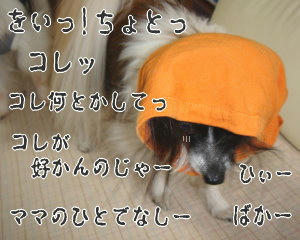 オレンジ、いつも着てない色なので新鮮な感じですよね(* ̄m ̄) あらし、ムリヤリ着せましたー(笑)似合ってますか♪ありがとうです(o^-^o) 以前は良く着せてたんですけどね~~風吹も今ほど嫌がってなかったし(^.^;