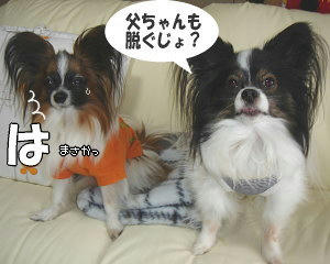 チョコちゃん、脱ぐ時も嫌がるんですね~~。風吹も腕、嫌がります。でも頭ほどではないですけどね・・。腕を抜く時、何やら文句言ってます(^w^)