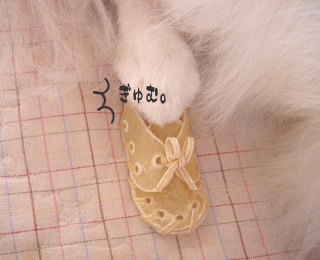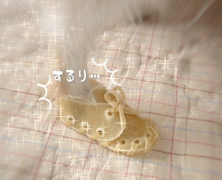 と思いつつ、風ちゃんの足にガムのくつをあてがったところ・・・