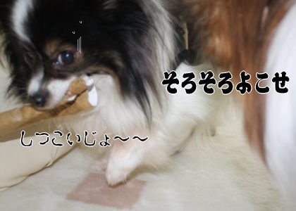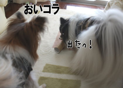 あらしでしょう~~オフ会の輪の中ではホントに温厚ですからね!よそのわんこを見付けると吠え吠えしますが、こんな怖い顔はしないです。相手が風吹だからできるのかもしれません(^w^) トイペ芯は最初の頃は食べたりしていましたが、味がマズかったようでペッペと出してました。それからは食べることはないですね~~。ひたすらカミカミして潰して満足するようです(゜ω゜*)