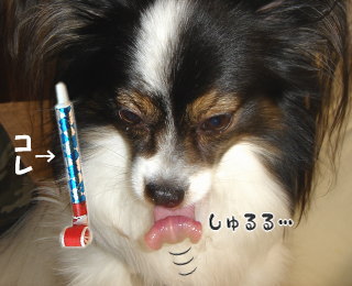 (゜∀゜)くわえたまま遊ぶことが多いのですが、いっつも不自然にはみ出して、