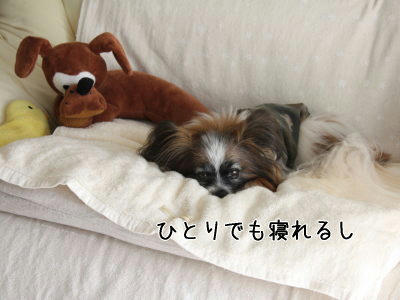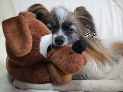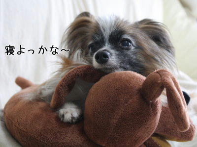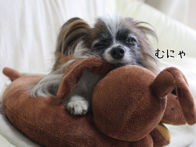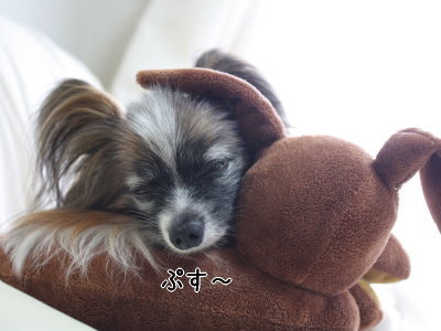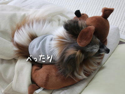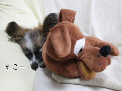 風ちゃんが添い寝する相手は専ら本官さん(=わんこ用安眠枕)