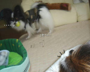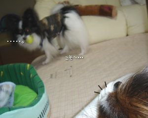 私のヒザしか来ないんです(*^m^*) 風吹あらし親子、なんかオモシロイ関係ですよ。確かに風吹が威張ってる!けど、たまにあらしが風吹を小馬鹿にしてみたり・・・(^.^; 何なんでしょう。あらしのボール作戦は、たまにやるんです~元々は風吹が良く使う手なんだけど、あらしも覚えたみたいで!(笑)あえなく玉砕してたけどね~~(* ̄m ̄) ププッ