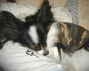 ママの左足で出来た三角地帯にハマって寝るのが好き♪