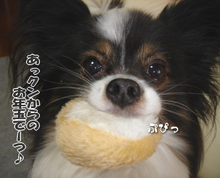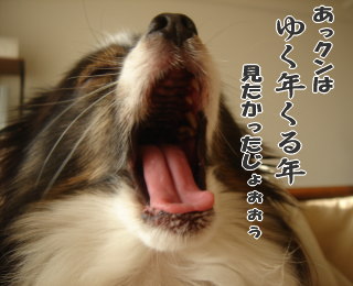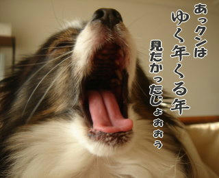 おめでとうございます♪え、飛ばし過ぎてますか(;^ω^A こりゃいかん。息切れが・・・(≧3≦) =3 今年は体力強化に努めたいな~と思ってますが、面倒くさがりの私が果たしてどこまで頑張れるか(オイオイ)と言うわけで、ムリはしない!と決めました(笑)被り物、年末にまた頑張っていただきました~。いいですか??(*^m^*) 他の写真はあらしが硬直してすんごいことになっていたんですが、正月からアレはあんまりなので自主規制しました(゜m゜*)ぷっ おヨダ付きのでいいんですか!(゜Д゜;) 指先でつままないととてもじゃないけど持てませんよっ!こちらこそ今年もよろしくお願い致します!