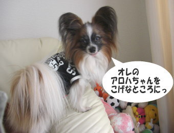 最近お戯れしてないし、新しい枕があるので移動してもらいましたから。