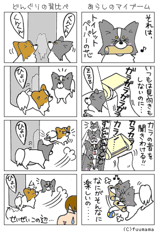 あらし、せっかくGETしたトイレットペーパーの芯を風吹に取られて助けを求めにくるところ可愛すぎるぅ