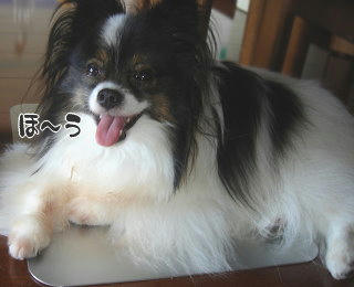 あらし、普通の雨降りの音は平気なんですよ。土砂降りでも平気だったり・・・でも今日みたいに遠くから迫って来るように振り出して(しかも手すりに打ち付ける音)それがビビリのスイッチを入れてしまったようで・・・(^・^;) そうなるともう、普通の降りになっても怖い気がして仕方ないようで、完全にやむまで挙動不審でしたよ。(^w^) ぶぶぶ・・・ホントに健康法なのかは謎ですが、炎天下で日光浴みたいなことするわんちゃん、数名知っています(笑)