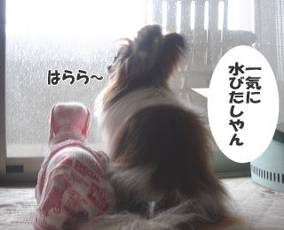 風ちゃんは余裕でアロハちゃんと雨を眺めてるのに、